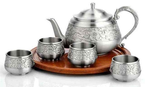 金屬茶具是用金、銀、銅、鐵、錫等金屬材料制作的茶具,屬我國最古老的日用器具之一。常見的金屬茶具有:金銀茶具、錫茶具、銅茶具等。