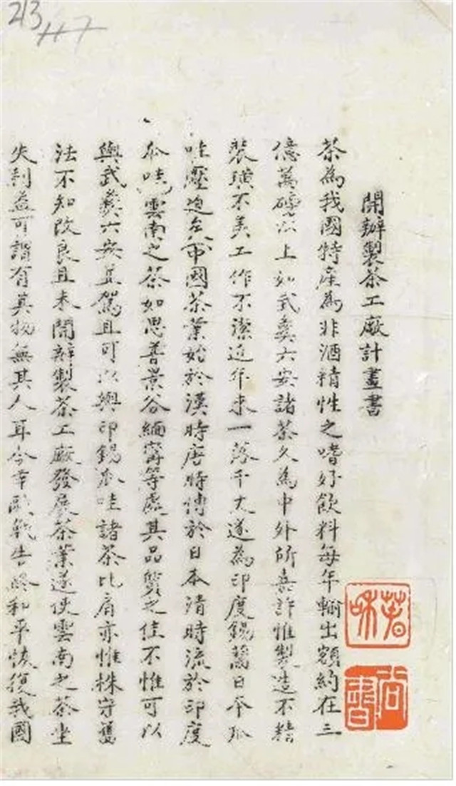 1920年10月,朱文精、陳洪疇擬制的《開辦制茶工廠計(jì)畫書》(節(jié)選)