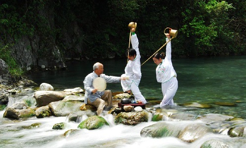 還有一些高雅的茶藝表演,是蒙頂山“禪茶”中所獨(dú)創(chuàng)的十八道獻(xiàn)茶技藝。相傳“龍行十八式”茶技是北宋高僧禪惠大師在蒙頂山結(jié)廬清修時所創(chuàng)。過去作為僧人修行的一門功課,“龍行十八式”茶藝只在蒙頂山僧人中流傳,直到清代才逐漸傳入民間。創(chuàng)下融茶道、武術(shù)、舞蹈、禪學(xué)、易理為一體的茶技-蒙頂派“龍行十八式”。佛教文化和茶文化的水乳交融,更奠定了蒙山作為世界茶文化圣山的至尊地位。