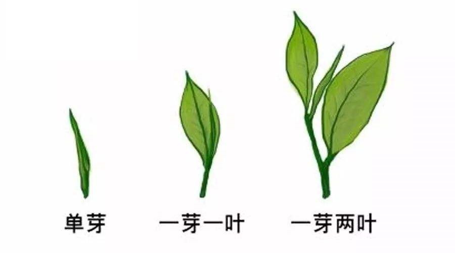 一槍一旗:一芽一葉,因?yàn)椴柩课词嬲箷r(shí)尖細(xì)如槍,茶葉已舒展時(shí)如旗幟。又稱”中芽”。