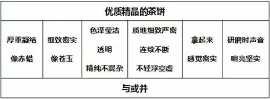 有的茶餅表面光彩而內(nèi)在灰暗,也有的茶餅內(nèi)里實在潔凈而外表質(zhì)樸。茶餅外表如同人的容貌各不相同,很難一概而論。總而言之,色澤瑩潔透明并且顏色不混雜,質(zhì)地細致嚴密而不輕浮,拿起來感覺密實,碾碎時聲音清亮,這些都可以表明是精品好茶。茶葉的鑒別,有的可以通過具體的言語和意旨來表達,有的只能心中領會了。