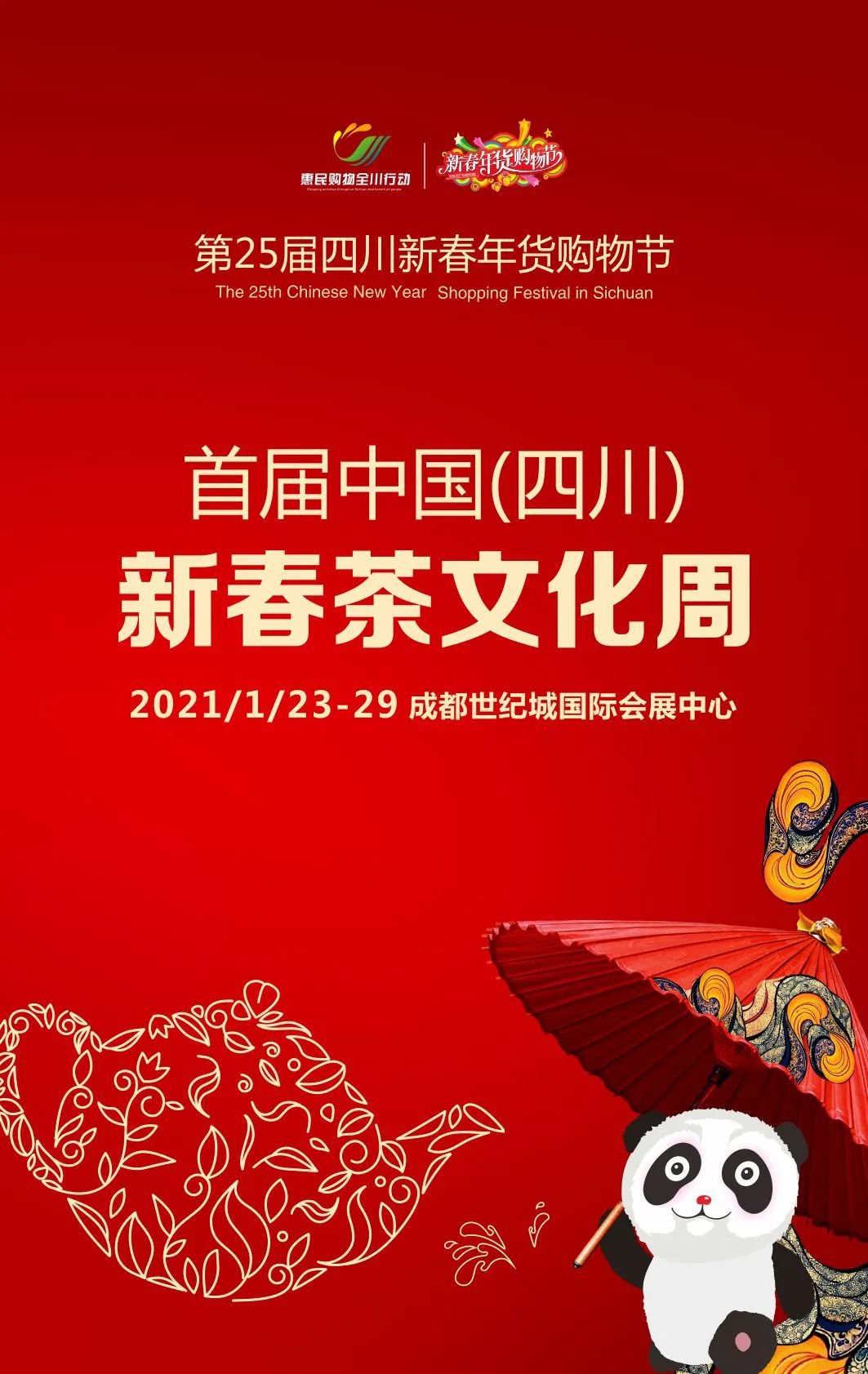 首屆中國(四川)新春茶文化周,將于2021年1月23日-29日精彩亮相成都世紀(jì)城國際會(huì)展中心!歡迎國內(nèi)外茶企、區(qū)域茶品牌共襄盛會(huì)!共謀新春商機(jī)!