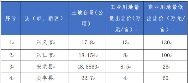 目前,黔西南州各縣(市、新區(qū))土地存量約192.2036公頃。全州地表水、地下水資源量比較豐富,城鎮(zhèn)和工業(yè)園區(qū)供水設施較為完善。非居民用水價格3.2-4.68元/立方米;特種用水價格:4.5-8.4元/立方米。