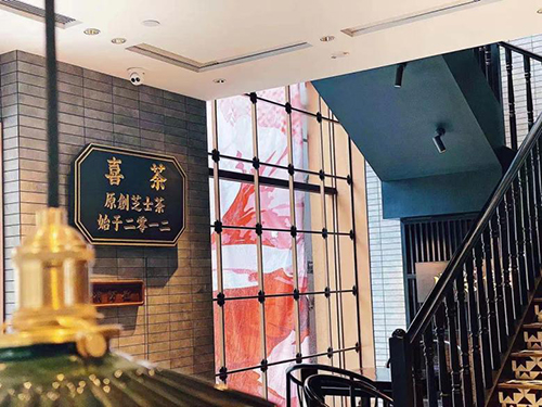 喜茶起源于江門,成長于廣東。將新茶風帶給世界的同時,喜茶仍在回頭凝視自身中流淌的廣府文化基因。喜茶整合永慶坊傳統(tǒng)建筑與廣東茶文化特點,讓新與舊達到平衡,使店面擁有現(xiàn)代藝術(shù)也有傳統(tǒng)老廣氣息,并將老廣州元素融入空間:三雕一彩一繡,青石磚,銅板浮雕,滿洲窗、趟櫳門、騎樓街,讓嶺南文化在新式茶文化中靈動延續(xù)。
