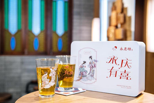「永慶有喜」非遺禮盒。永慶坊和喜茶,聯(lián)合廣彩國家技藝傳承人翟惠玲老師,從其經(jīng)典作品《松下品茗》中汲取靈感,共同推出「永慶有喜」兩個非遺禮盒,呈現(xiàn)傳奇廣彩與茶文化的匠心融合。