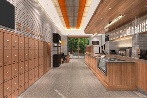 水吧區(qū)域的木紋理與天然石材構(gòu)造傳統(tǒng)茶樓氛圍,以新延舊的方式來設(shè)計水吧區(qū)域。